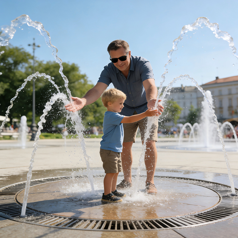 Crowd Safety: Wide walkways around the fountain, overload protection for sensors (avoids sudden water surges), and emergency stop buttons (visible and accessible).